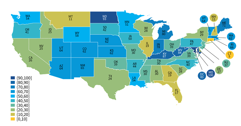 | WY | 89% | 73% | 0% | 48% | 75% | 100% | 16 | 32 | 50% |