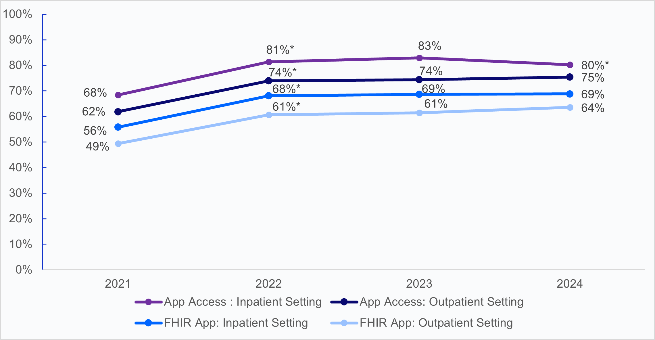 | FHIR app | 57% | 68%* | 70% | 70% |