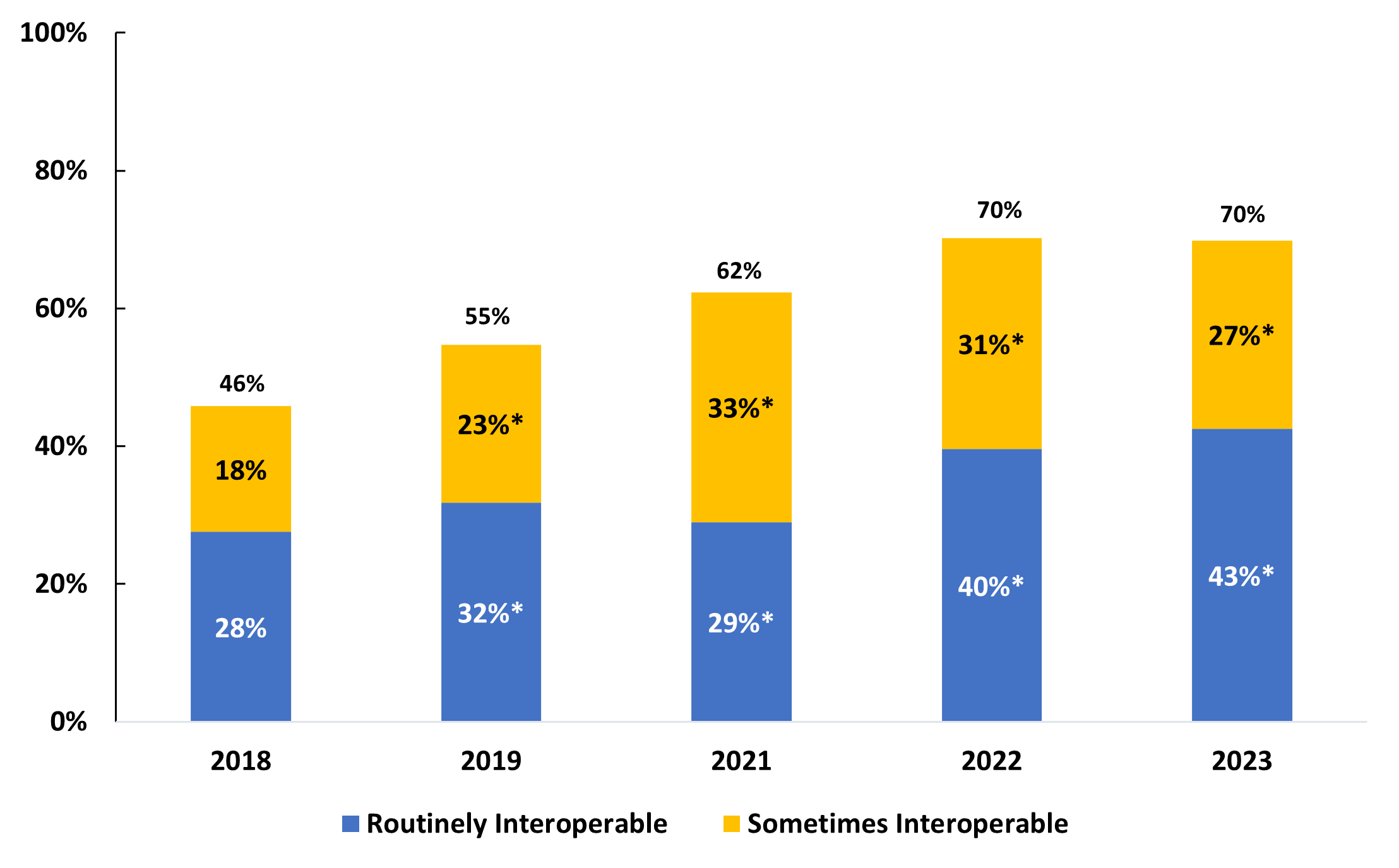 | Overall Interoperability | 43% | 27% | 30% |